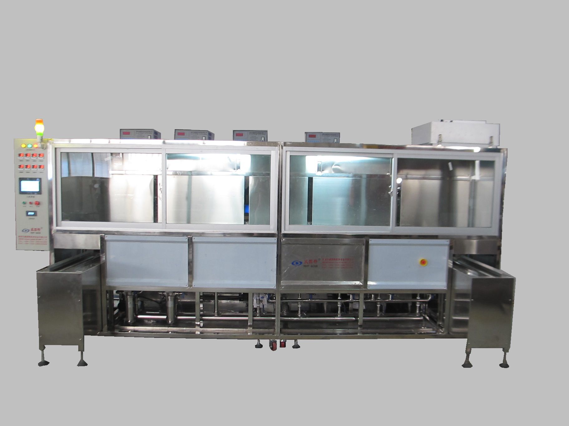 高硼硅玻璃管超聲波清洗機(jī)VGT-1307FS 高硼硅玻璃管超聲波清洗機(jī)共有13個(gè)功能槽,配置有循環(huán)過濾系統(tǒng)、自動(dòng)恒溫系統(tǒng)、拋動(dòng)系統(tǒng)、超聲波清洗系統(tǒng)、溢流系統(tǒng)等。