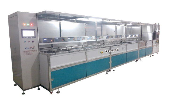 功能光學薄膜超聲波清洗機深圳威固特VGT-1009FH光學超聲波清洗機,設備共有10個功能槽,配置有噴淋系統、循環過濾系統、自動恒溫系統拋動系統、超聲波清洗系統、拋動系統、頂部框架系統、熱風烘干系統(百級FFU)、定時系統等。